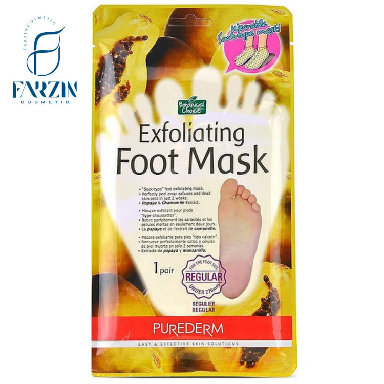 ماسک لایه بردار پا پیوردرم محصولی منحصر به فرد از برند کره ای پیوردرم است . این ماسک بصورت ورقه ای شبیه جوراب طراحی شده است . این محصول سلول های مرده و باکتری های پاها را لایه برداری کرده و به پاها لطافت و نرمی را هدیه می کند . ماسک لایه بردار پا پیودرم حاوی عصاره پاپایا ، لیمو ، پرتقال و بابونه است . ماسک ورقه ای لایه بردار پا پیوردرم با عصاره گیاهان بابونه و پاپایا بعد از گذشت دو هفته به طور کامل سلول های مرده پوست را از بین می برد و علاوه بر آن لطافت و نرمی را به محض استفاده به ارمغان می آورد . عصاره بابونه استفاده شده در ترکیبات این محصول باعث جوانسازی پوست شده و عصاره پاپایای موجود در آن باعث تقویت ایمنی بدن و از بین برنده رادیکال های آزاد می شود . نکته مهم در استفاده از ماسک لایه بردار پا پیوردرم این است که : در صورت وجود زخم ، بریدگی و سوختگی و ضایعاتی از این دست از این محصول استفاده نکنید و تا زمان اتمام لایه برداری از استفاده مجدد ماسک جلوگیری نمایید .