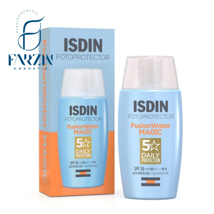 ضدآفتاب فیوژن واتر مجیک ایزدین یکی از انواع ضد آفتاب ایزدین است که بافتی فوق العاده سبک و زود جذب روی پوست داشته و برای استفاده روزانه ایده آل است. این ضد آفتاب علاوه بر محافظت بالا از پوست در برابر اشعه های مضر نور خورشید با SPF50، پوست را رطوبت رسانی کرده، چربی آن را کنترل میکند و دارای خاصیت آنتی اکسیدانی است. ضد افتاب ایزدین مجیک برای پوستهای چرب ایده آل است، فاقد روغنهای معدنی است، جلوهای کاملا مات روی پوست دارد و احساس چربی و سنگینی ایجاد نمیکند.