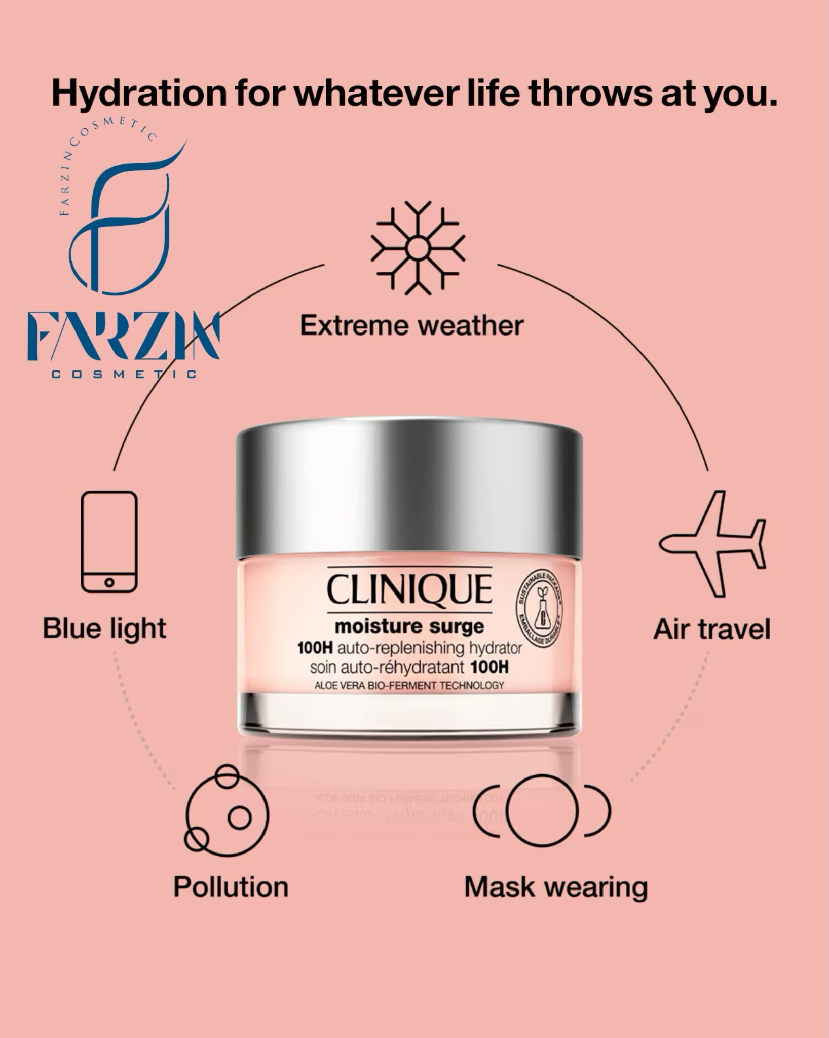 آبرسان صد ساعته کلینیک، جزو بهترین کرمهای آبرسان صورت و یکی از پرفروشترین محصولات برند کلینیک است که تا ۱۰ لایه در پوست نفوذ کرده و باعث هیدراته شدن عمیق پوست میشود؛ همچنین رطوبت را تا 100 ساعت حفظ کرده و موجب تحریک منبع رطوبت داخل پوست شده تا دائما خود را هیدراته و مرطوب نگه دارد. آبرسان ۱۰۰ ساعته کلینیک با رفع خشکی پوست موجب جلوگیری از بروز زودرس علائم پیری شده و چین و چروکهای ریز و خطوط اولیه ناشی از خشکی را تا حد زیادی برطرف میکند. از تخریب لایه رویی و محافظ پوست جلوگیری کرده و آن را ترمیم میکند تا پوست در مقابل آسیبهای بیرونی مقاوم باشد. بافتی ژلی و سبک دارد، فاقد چربی، الکل، عطر و پارابن میباشد و برای انواع پوست حتی پوست های حساس مناسب است.